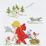 娘のリクエストで、結婚式のウェルカムボードとして作りました。 刺しているうちにウェディングらしくと、リネンの色を淡いピンクにしたり、ビーズをドレスの裾、襟、ブーケ、ヴェール いたる所に付けたり、エフェクト糸を重ね刺ししたりと、かなり盛り込んでしまいました。 作品の雰囲気的には少し疑問ですが、花嫁花婿の希望でそれぞれにゆかりのあるチャームも添えました。 L & Lチャート